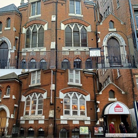 Two views of the Tower building - in its days as a Jewish synagogue and a recent shot.