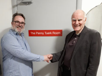 Prior to the performance a large group of friends gathered together in the beautifully-decorated Tower bar for a drinks reception to celebrate the almost 50 years Penny dedicated to the theatre. The drinks were followed by the unveiling of the newly-named "Penny Tuerk Room" (formerly Rehearsal Room 2) by Penny's husband, Laurence, and Artistic Director, Martin Mulgrew.