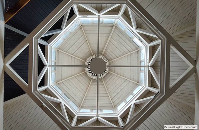 The lovely octagonal roof structure above the stage of the new theatre