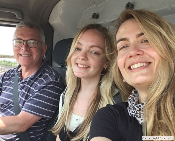 Three of the company of The Winter's Tale driving to Paris in the van